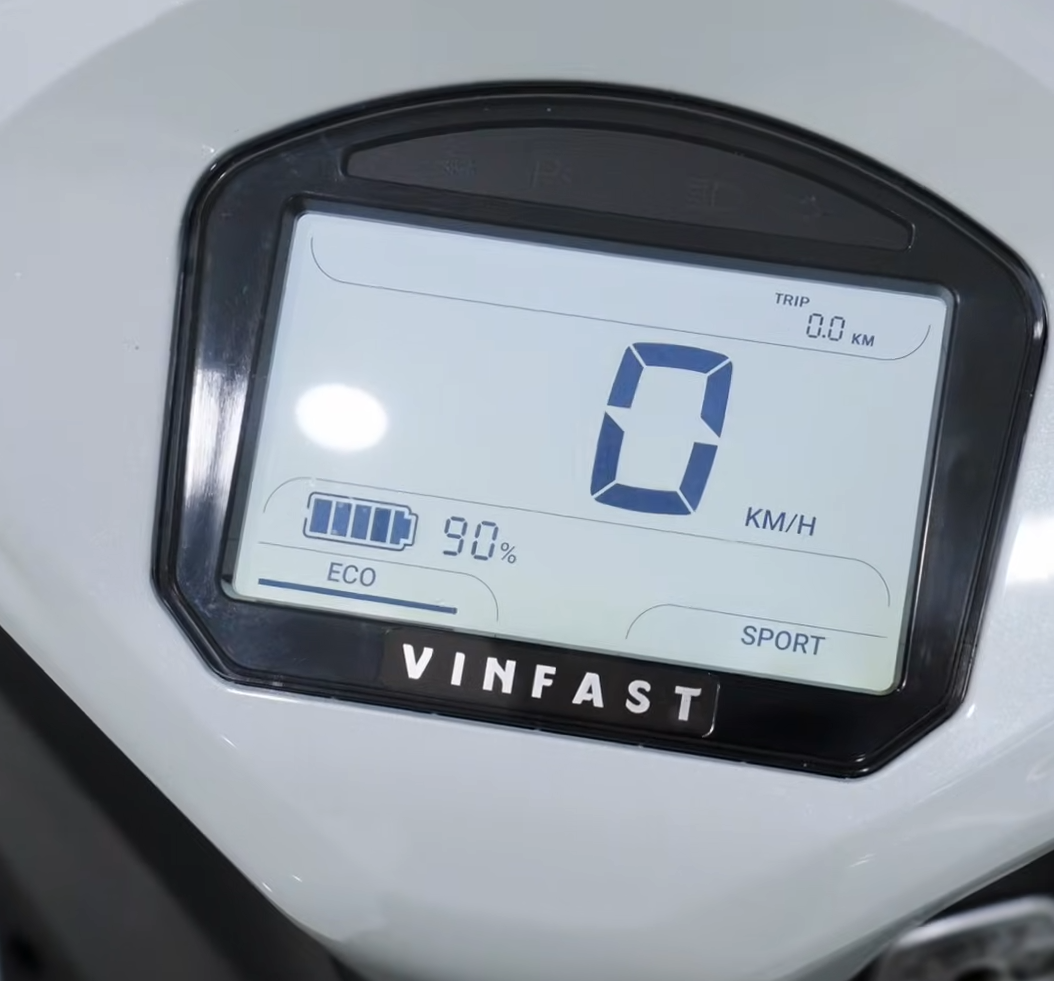 Màn hình hiển thị LCD kích thước 4.3 inch hiển thị rõ ràng các thông tin cơ bản như tốc độ, mức pin, trạng thái xe. Giao diện đơn giản, dễ nhìn giúp người lái tập trung hơn khi di chuyển.